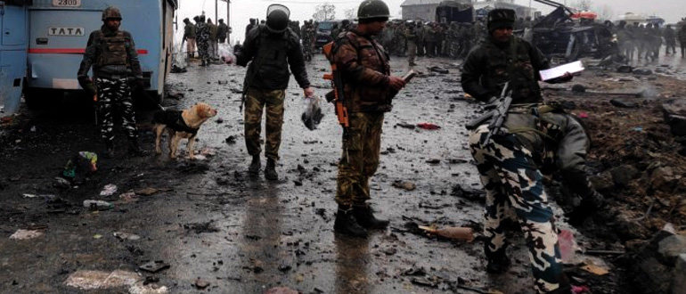 At least 49 Indian paramilitary police were killed in a suicide attack in the Kashmir region on Thursday, prompting an immediate war of words between the nuclear-armed nations of India and Pakistan. An explosive-laden car obliterated a bus on a major highway around 20km from the regional capital, Srinagar. Indian television broadcast footage of the vehicle, which had been part of a 78-vehicle convoy, showing it had been completely destroyed by the force of the blast with local media reporting...
