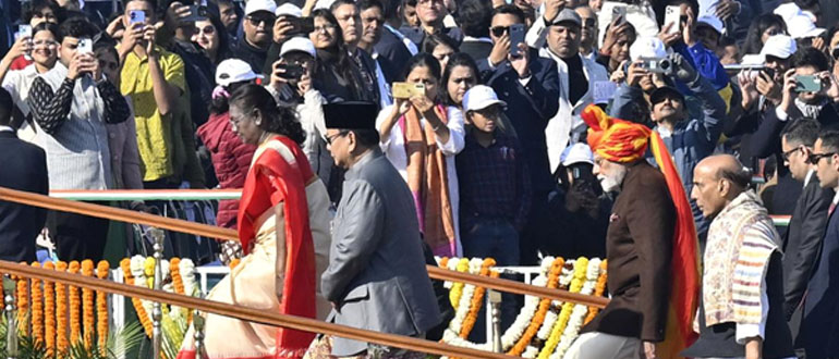 New Delhi | WTNS | Jan 26:A cold winter morning, coupled with a bright sunny afternoon, on Sunday (January 26, 2025) greeted thousands of people at Kartavya Path as President Droupadi Murmu led India’s 76th Republic Day celebrations, with Indonesian President Prabowo Subianto as the special guest for the ceremony, in the national capital. The celebrations’ theme was ‘Swarnim Bharat: Virasat aur Vikas,’ showcasing military strength, with focus on development and cultural diversity. The Indonesian...