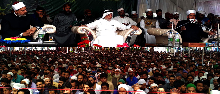 Srinagar:Grand annual Shah-e-Jeelan conference organized by the Karwan-e-Islami International at Markazul Madaris Jamiatul Qadriya at Trigam, Shadipora in Sumbal area of Kashmir attended by thousands of people while Sheikh Hamad Geelani, the grandson of famous Islamic dignitary Sheikh Abdul Qadir Jeelani (R.A), from Baghdad Iraq participated in the conference as a special guest.